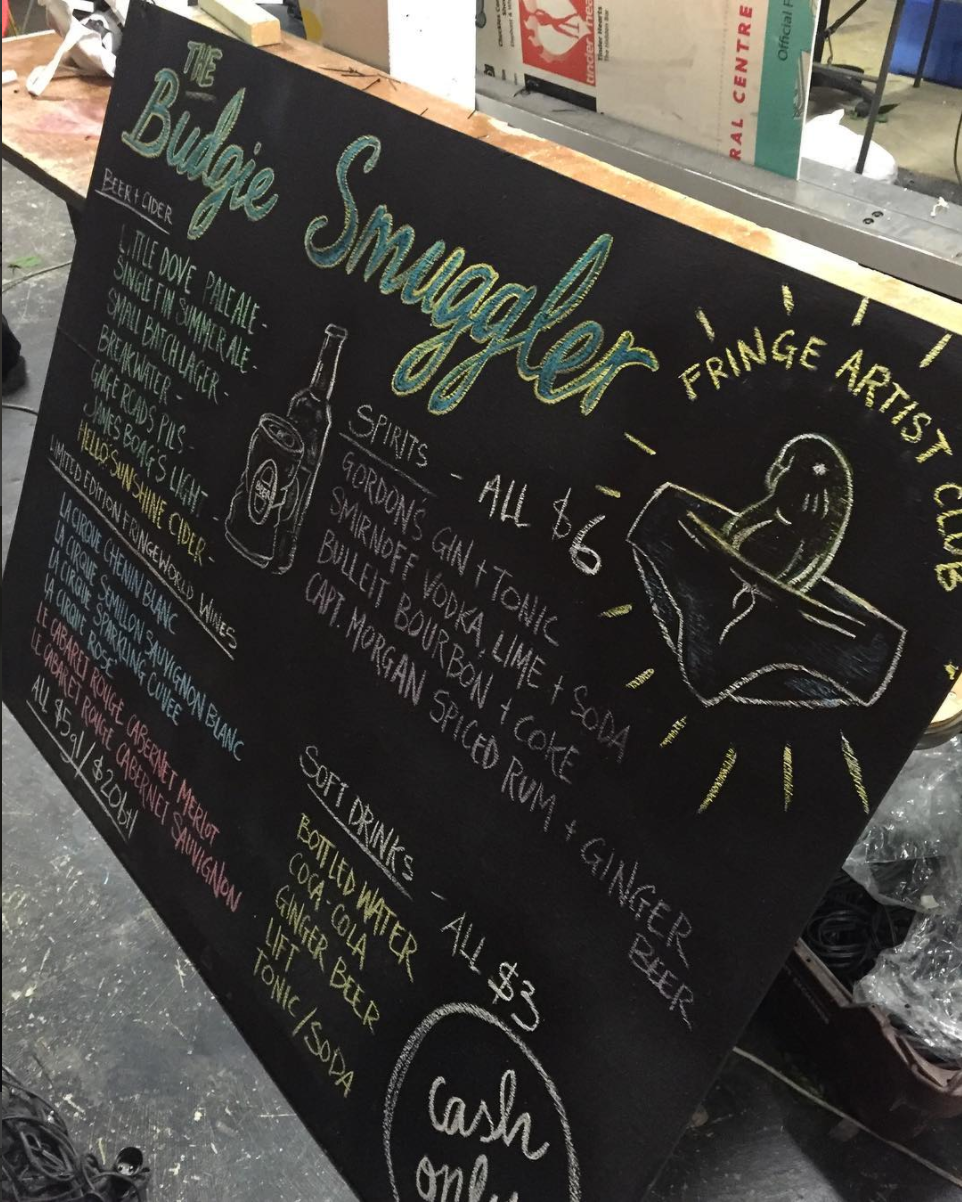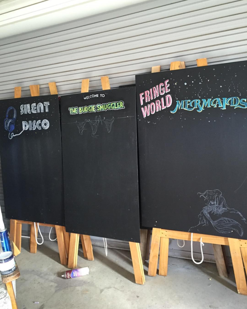 I was commissioned by Perth Fringe Festival to create 30+ chalkboards for all of their stages and stalls at the 2017 festival.