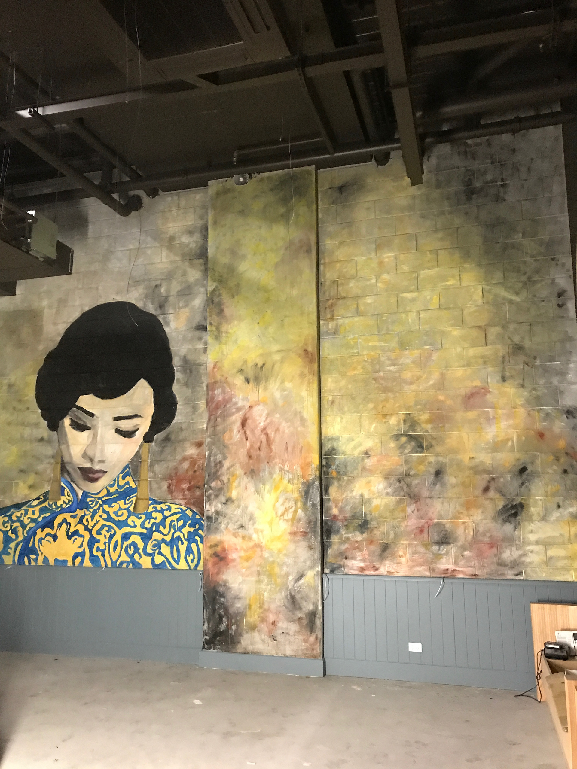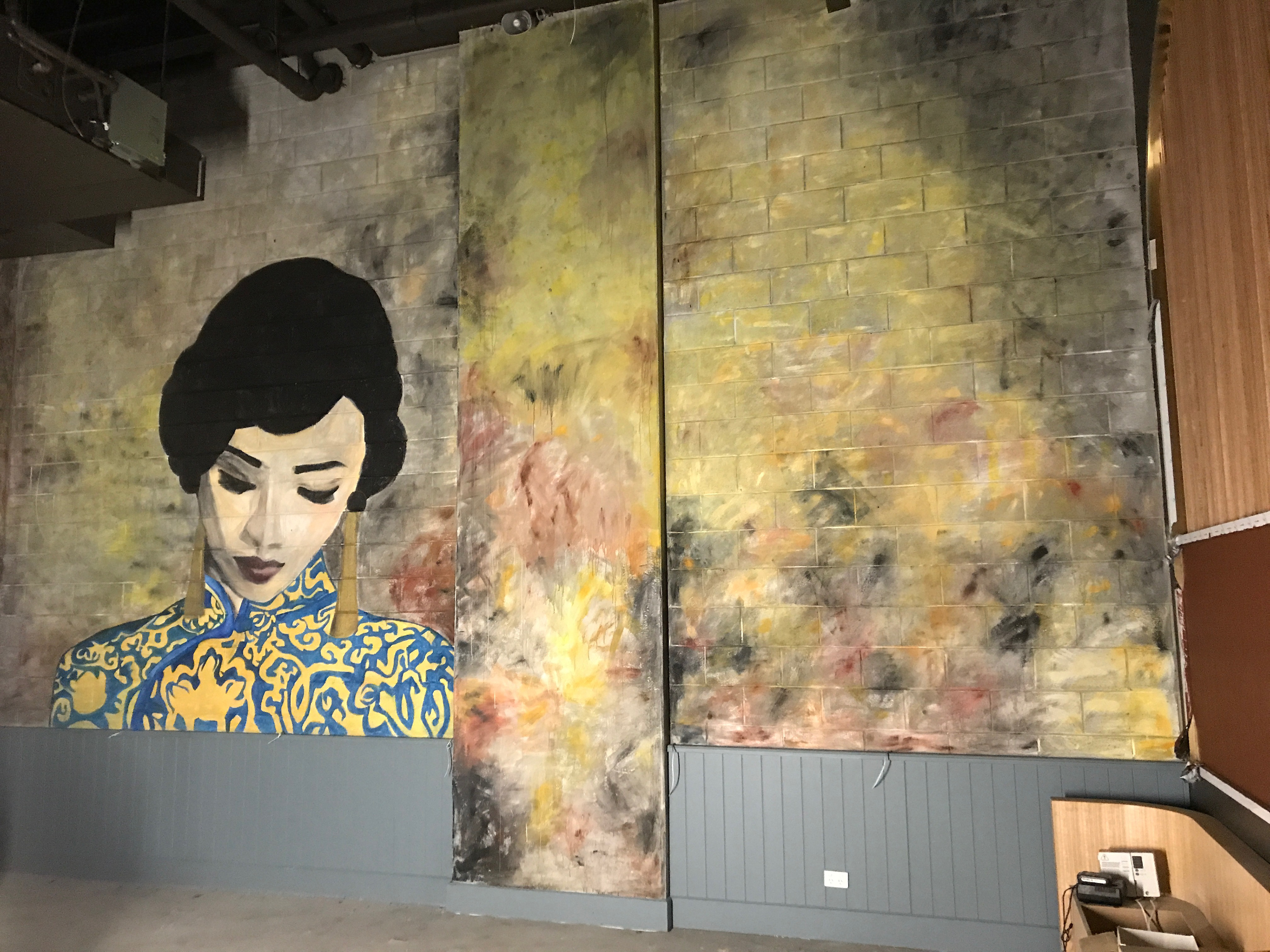 We created a custom artwork for modern Chinese Brasserie Tuan Tuan in Carlton, Vic. The work was created with acrylics on cinder block and was approx 10m x 15m.