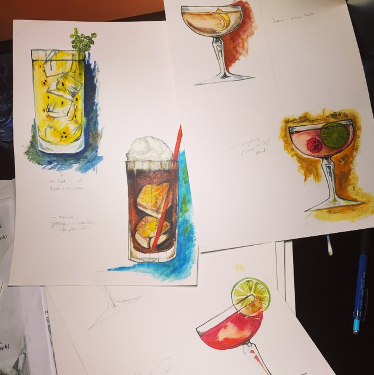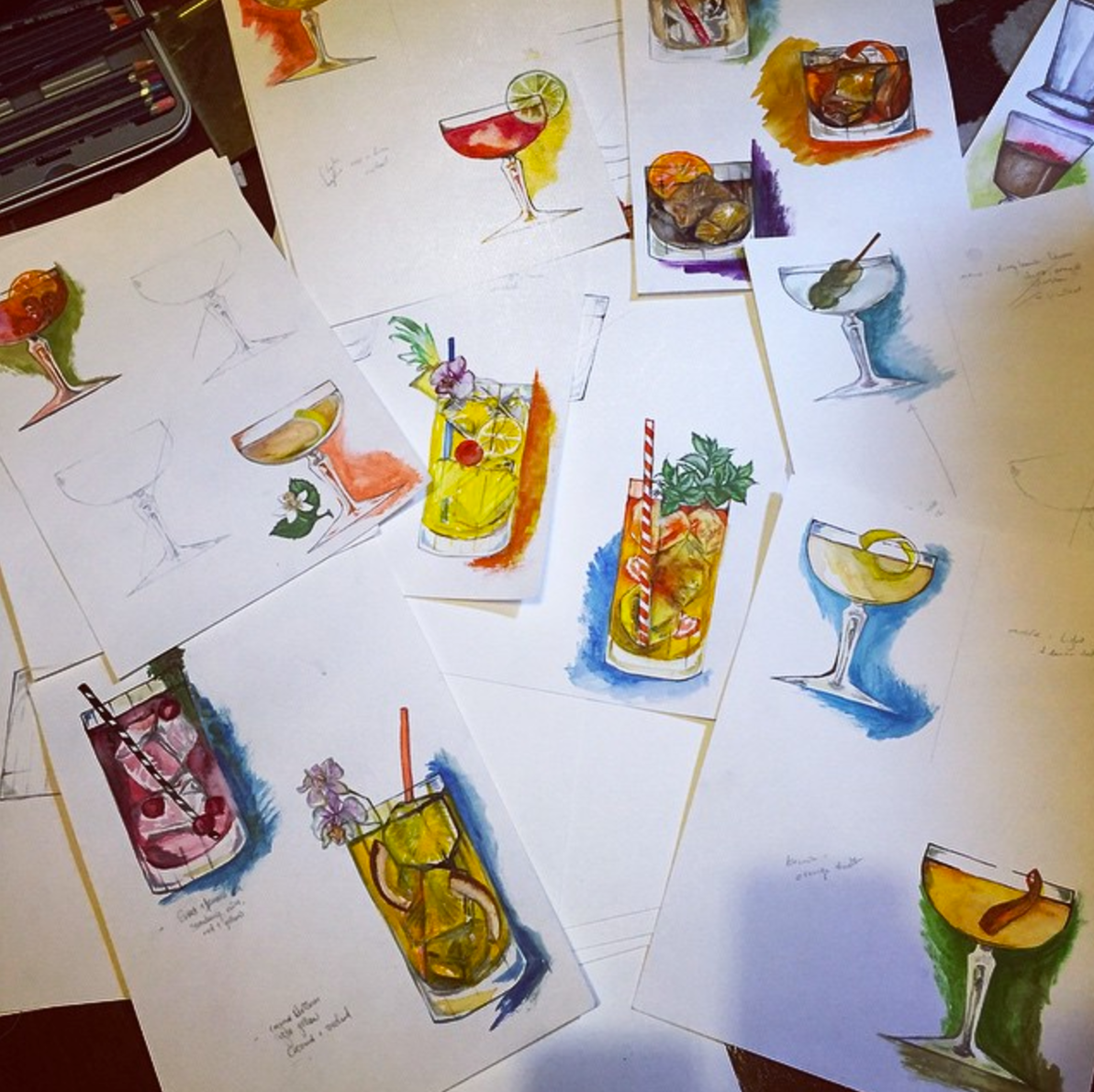 I was commissioned to create custom watercolour illustrations for Halford Bar's signature cocktail menu.